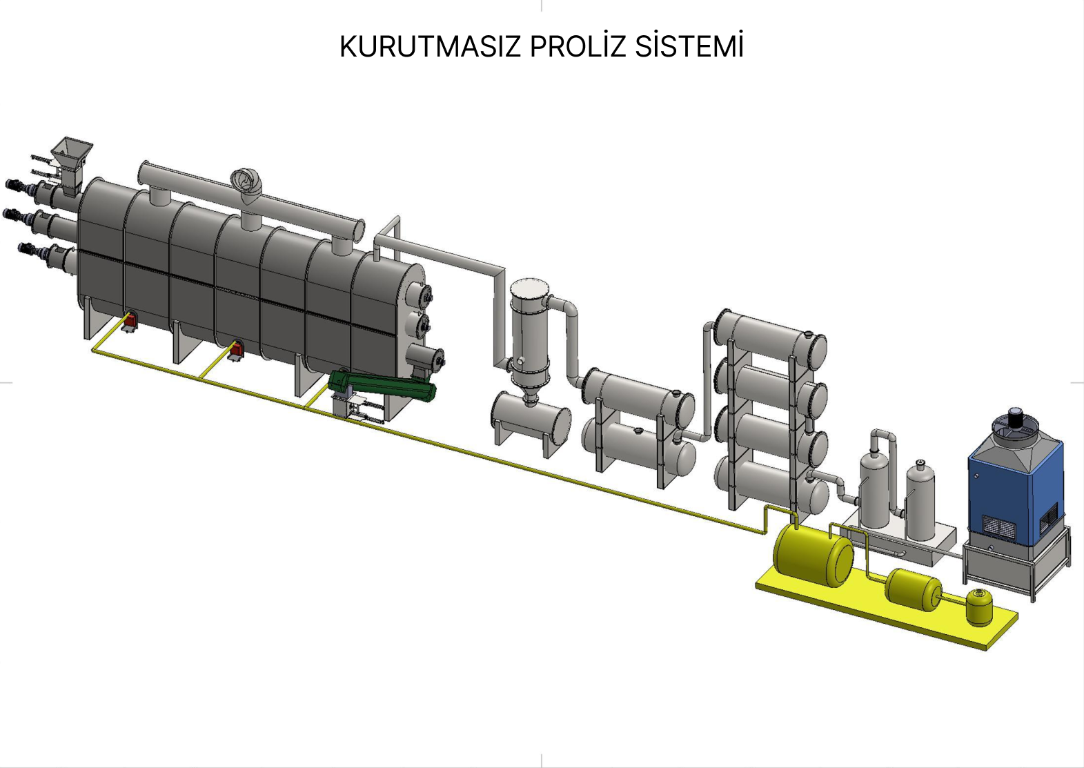 dakika olursa %15 katı, %70 sıvı, %15 gaz oluşur. Netice; demir, cam hariç bütün atıklar proliz vasıtası ile ayrıştırılarak ısıya ve zaman bağlı olarak katı, sıvı ve değişik gaz fazlarında ayrıştırılarak geri kazanımı sağlanır. Prolizimizin Ar-ge si bu çerçevede şekillenecektir.